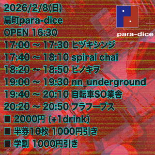 出演:ヒヅキシンジ/spiral chai/ピノキヲ/nn_underground/自転車SO業舎/フラフープス