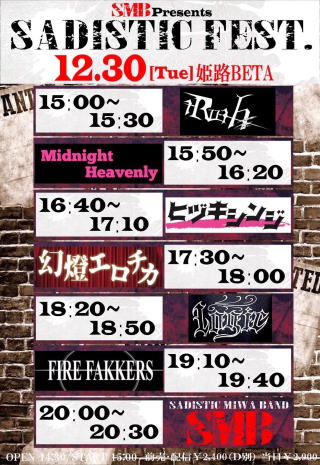 出演:ヒヅキシンジ/幻燈エロチカ/tRush/Midnight Heavenly/ロジック/ファイアーファッカーズ/SADISTIC MIWA BAND